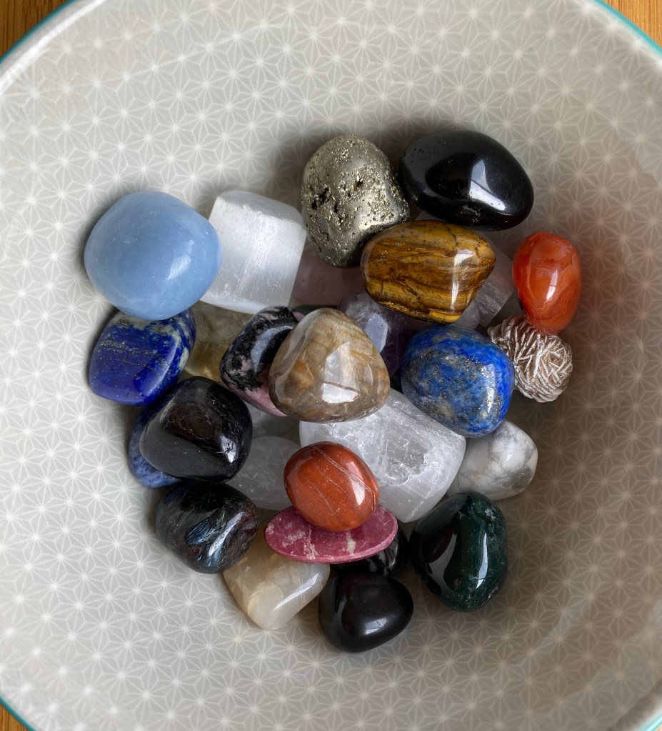 Tip: Do this with one crystal at a time, two or three if you are advanced. You want to make sure each individual crystal is fully cleansed. If you do many at a time, it’ll be hard to know which ones are cleansed and which ones need more cleansing.